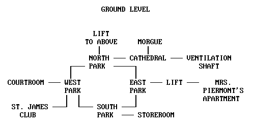 and learn your real name. Use the ID card on the elevator slot to go up one level to the police station. Exit to the left, then move one screen right to the down elevator. Go down to Belle Vue. Move one screen left and use the down elevator to descend to ground level. Move one screen left and talk to the doorman of the St. James Club: